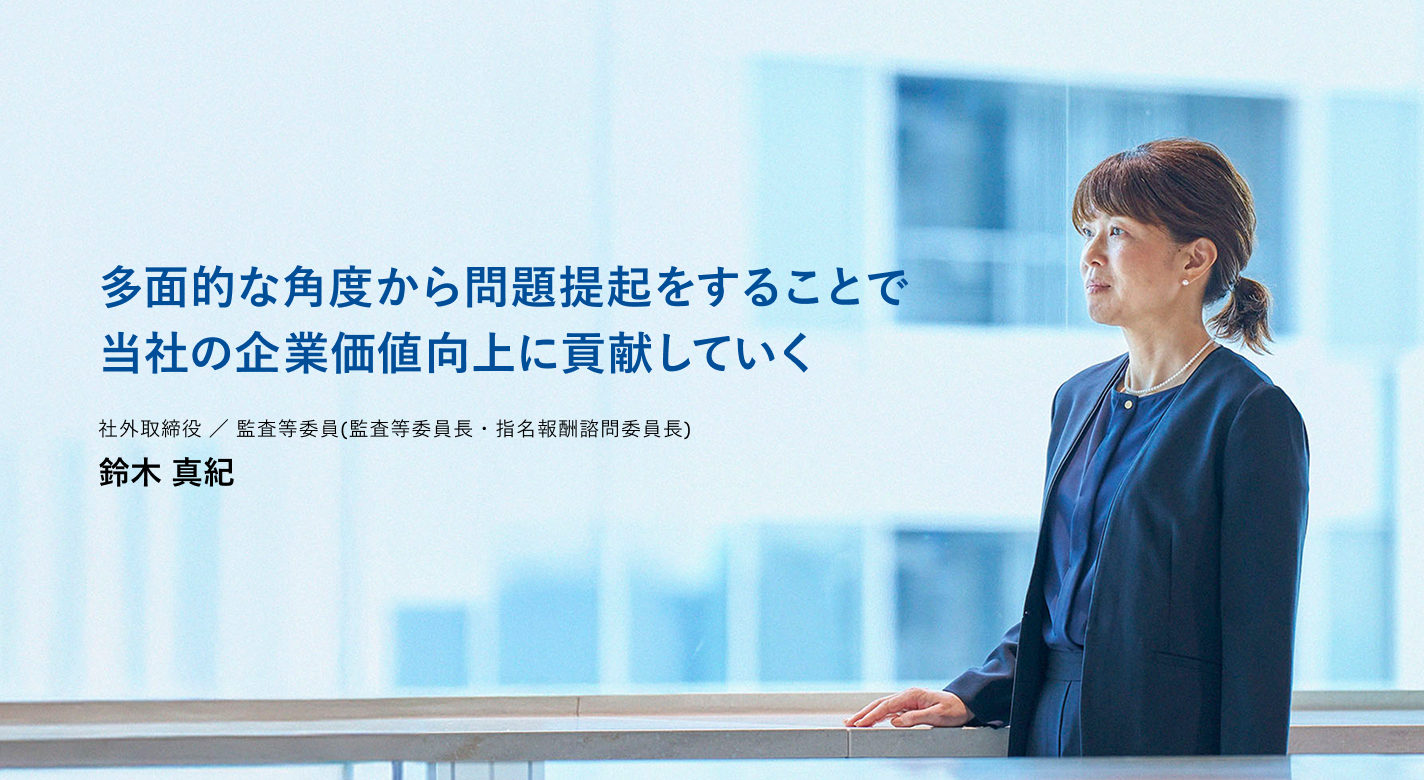 当社は監査等委員会設置会社として、社外取締役5名のうち、3名が監査等委員、2名が非委員です。監査等委員はリスクを念頭に置いて監督、監査を担う機会が多くある一方で、非委員の社外取締役は、事業推進の視点から専門性に基づく助言を行います。この2つの役割が相互に補完し合うことで、役会の監督機能は「守り」と「攻め」の両面からより実効的に発揮されています。